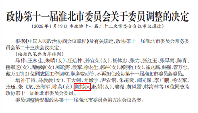 1月19日,经淮北市政协十一届二十三次常委会会议审议通过,bat365英语教研室教师、九三学社社员陈博识增补为政协第十一届淮北市委员会委员