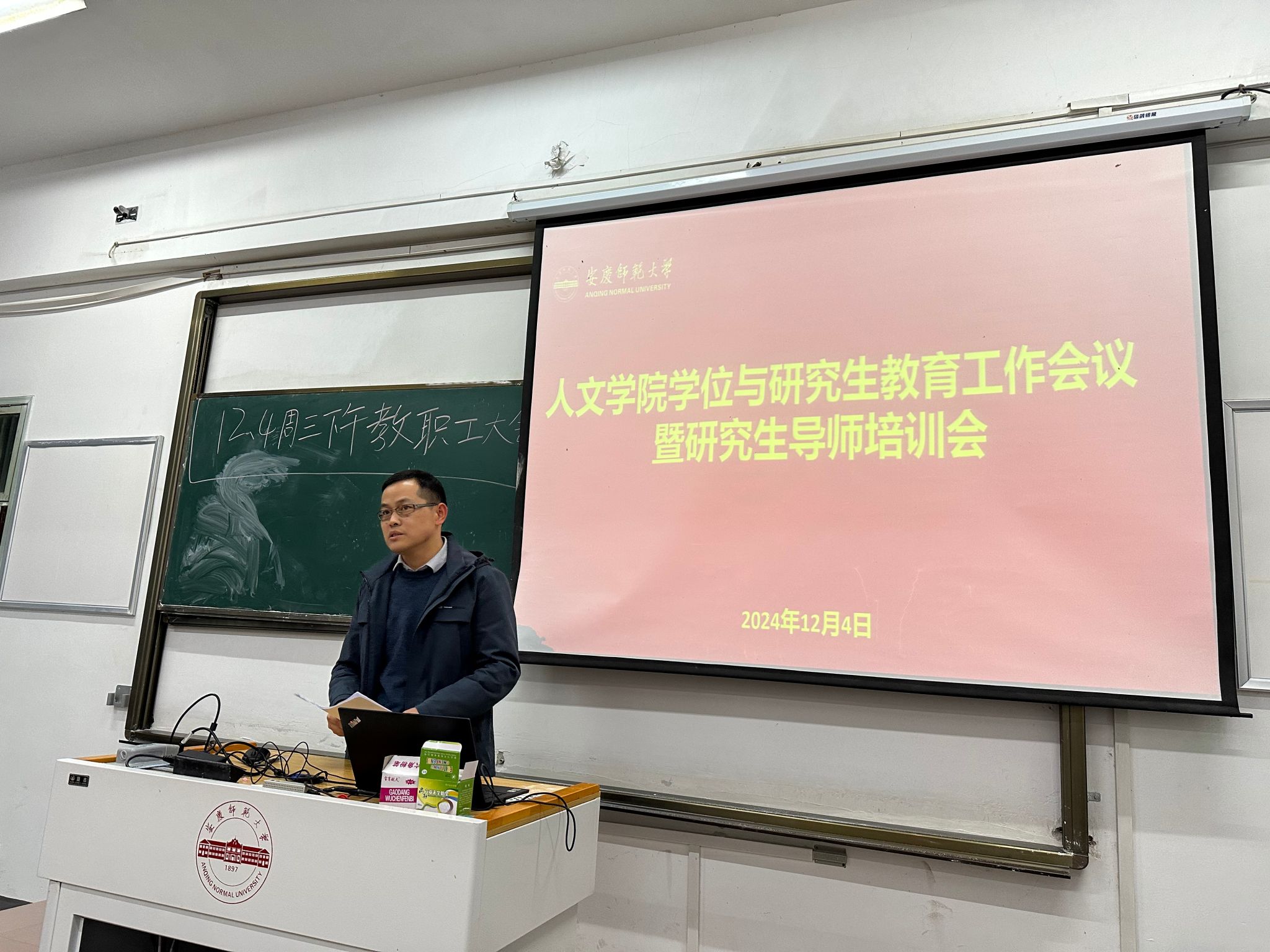 会议首先开展了“弘扬教育家精神 矢志立德树人”师德师风主题学习,结合优秀师德故事、先进事迹以及师德师风警示教育典型案例,引导广大导师坚守教育初心,牢记职业操守,自觉崇德修身,潜心立德树人。随后全体研究生导师重点围绕《研究生导师手册》(2024版),深入学习了新颁布的《中华人民共和国学位法》、有关学术学位与专业学位研究生教育分类发展的国家政策文件以及学校近期印发的关于导师队伍和研究生培养方面的规章制度。会上,通报了中国语言文学一级学科硕士学位授权点周期性合格评估进展情况以及研究生导师组和组会落实专项检查工作情况,强调要进一步强化研究生培养过程管理,提高研究生培养质量。会议还就开展研究生学位授予标准编制工作进行了专题说明和工作布置,与会研究生导师围绕标准制定、特别是申请学位研究成果基本条件进行了深入交流并提出了完善建议。