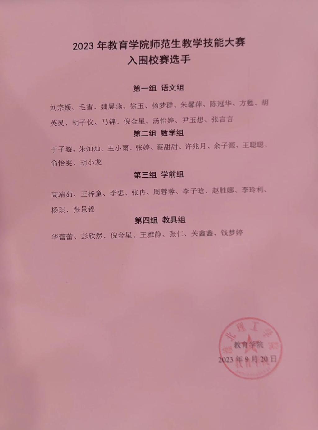 2023年bat365中文官方网站师范生教学技能大赛入围校赛名单公示