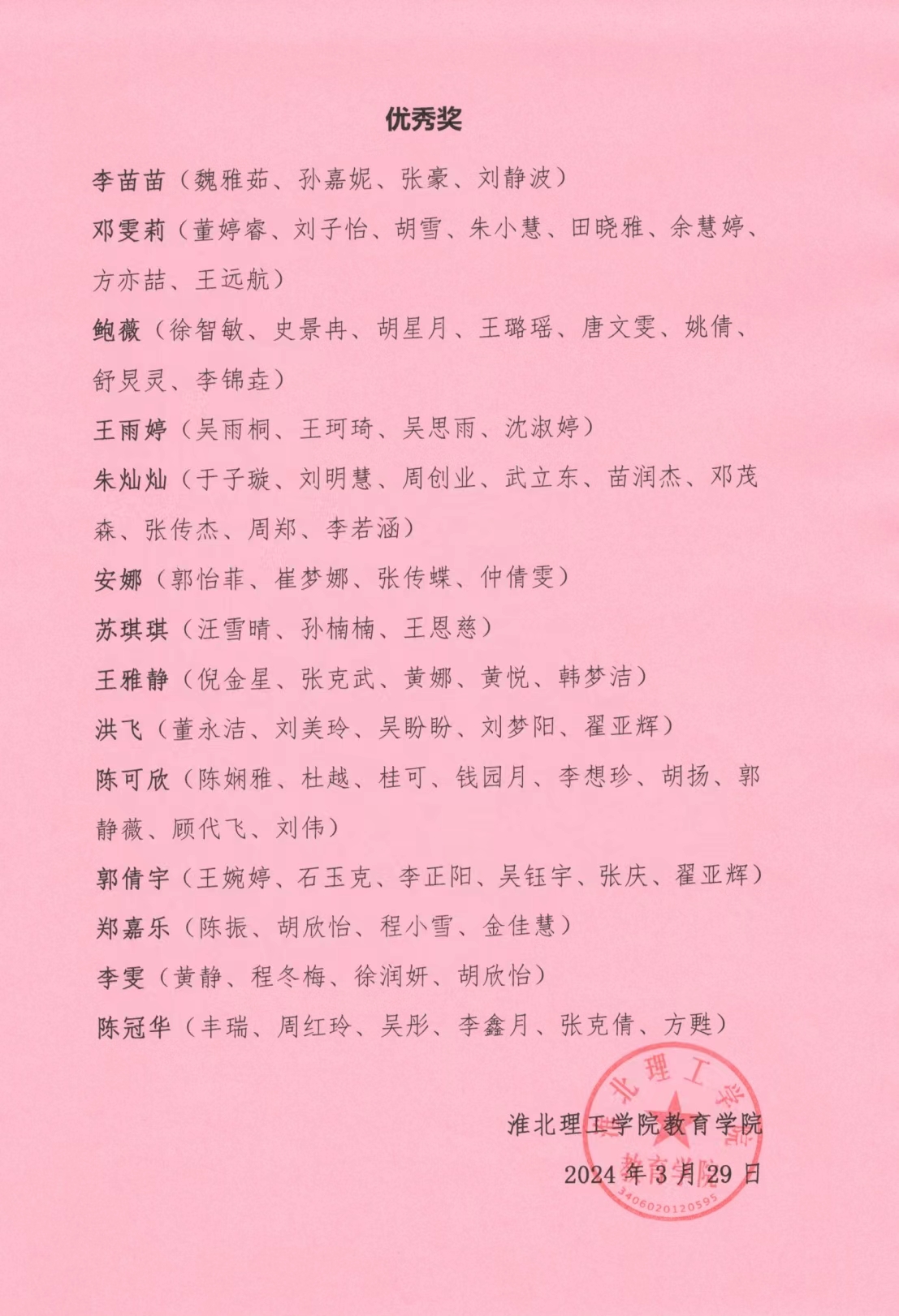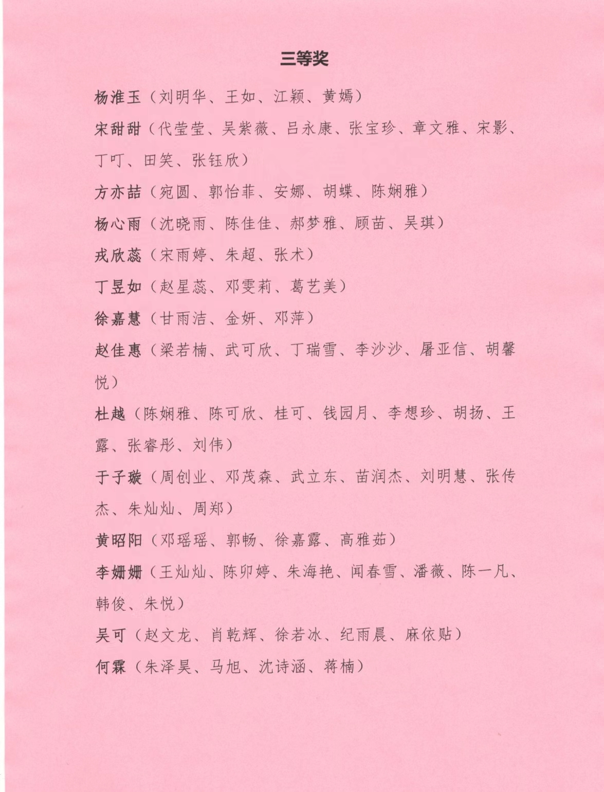 热烈祝贺bat365程冬梅、臧宇祺、余乐、谢正宇、胡欣怡、代娇娇、李雯、黄静、徐润妍等275位同学获得奖项,具体获奖名单公示如下: