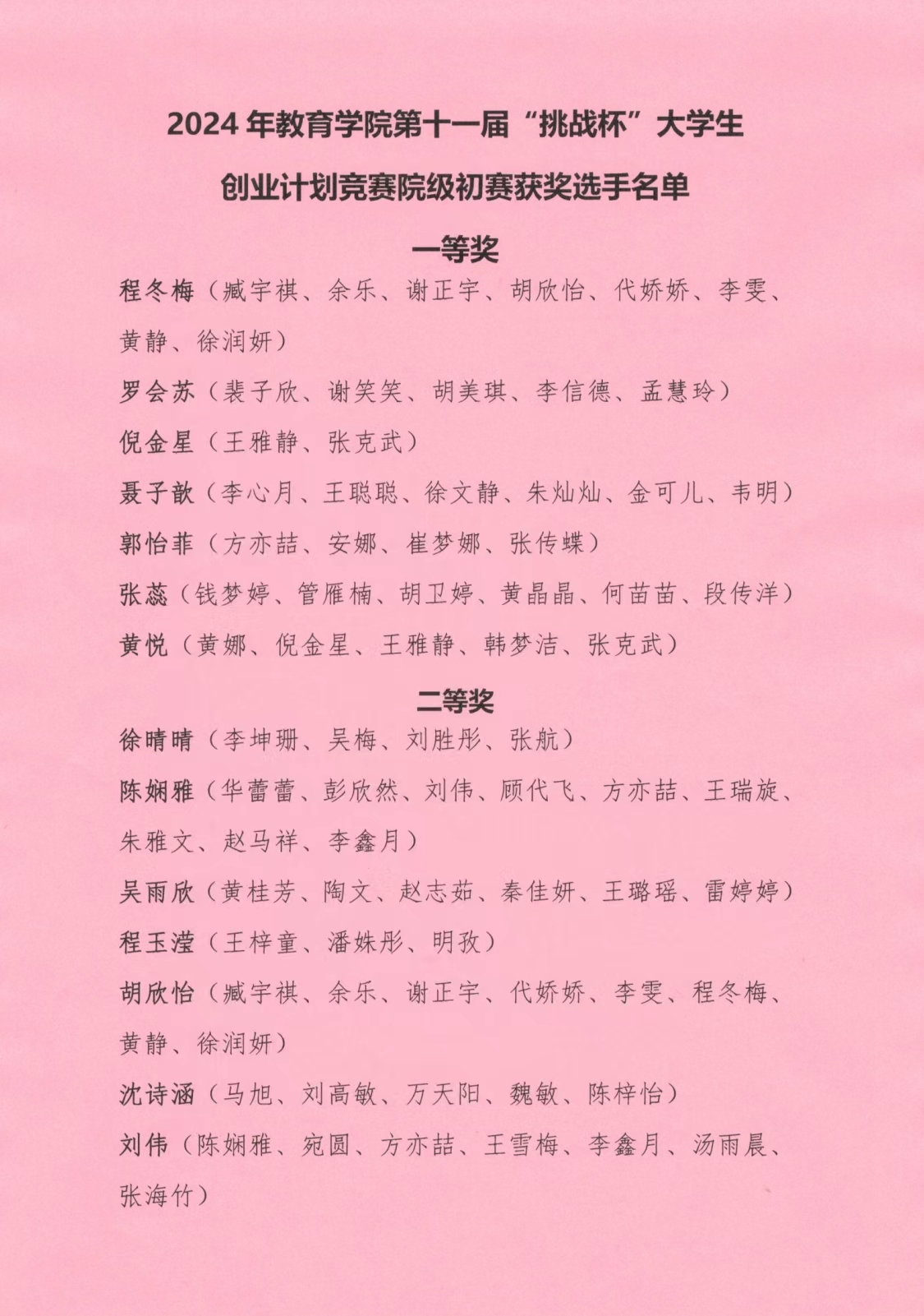2024年bat365中文官方网站第十一届“挑战杯”大学生创业计划竞赛院级初赛获奖选手名单