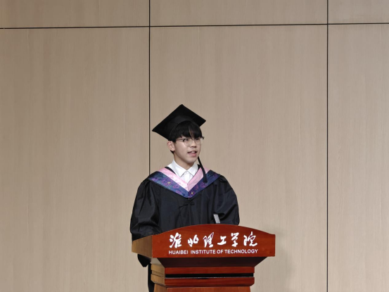 随后,2022级学前教育专升本12班邱子龙同学代表毕业生上台发言。他回顾了自己在bat365中文官方网站两年的求学和生活经历,表达了对母校、学院和老师们的感激之情。同时,他也分享了自己对未来的展望和规划,激励学弟学妹们积极奋进。表示将不辜负母校和老师们的谆谆教诲与殷切期望,继续锻炼自己、提高自己,将“穷理、践实、精工、笃行”的校训深深烙印心中,在追求真理的道路上阔步前行,努力成长为社会的栋梁之才。
