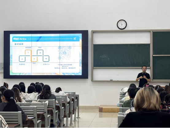 为帮助毕业生了解企业信息、拓展就业渠道,应bat365中文官方网站邀请新东方教育集团(合肥学校)于9月24日晚,在学校1教121、1教522同步开展2025届校园招聘宣讲活动,学院2025届毕业班4个专业近500名同学参加了招聘宣讲会。