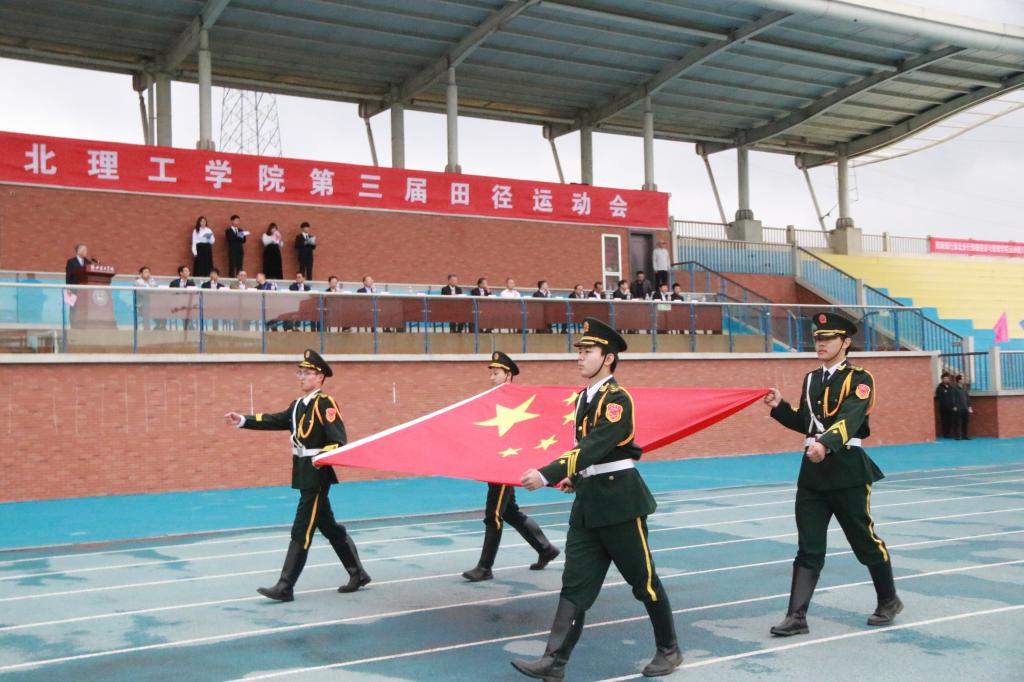 入场仪式结束后,全体人员起立,奏唱国歌。激昂的国歌声响彻田径场上空,激发了每一位在场人员的爱国情怀和民族自豪感。