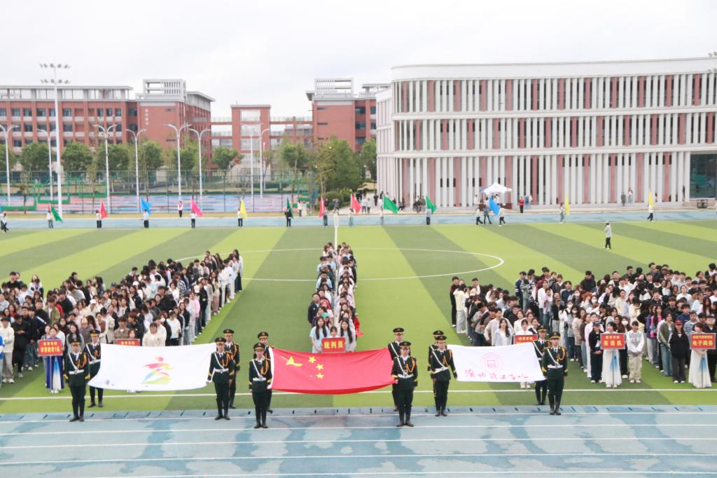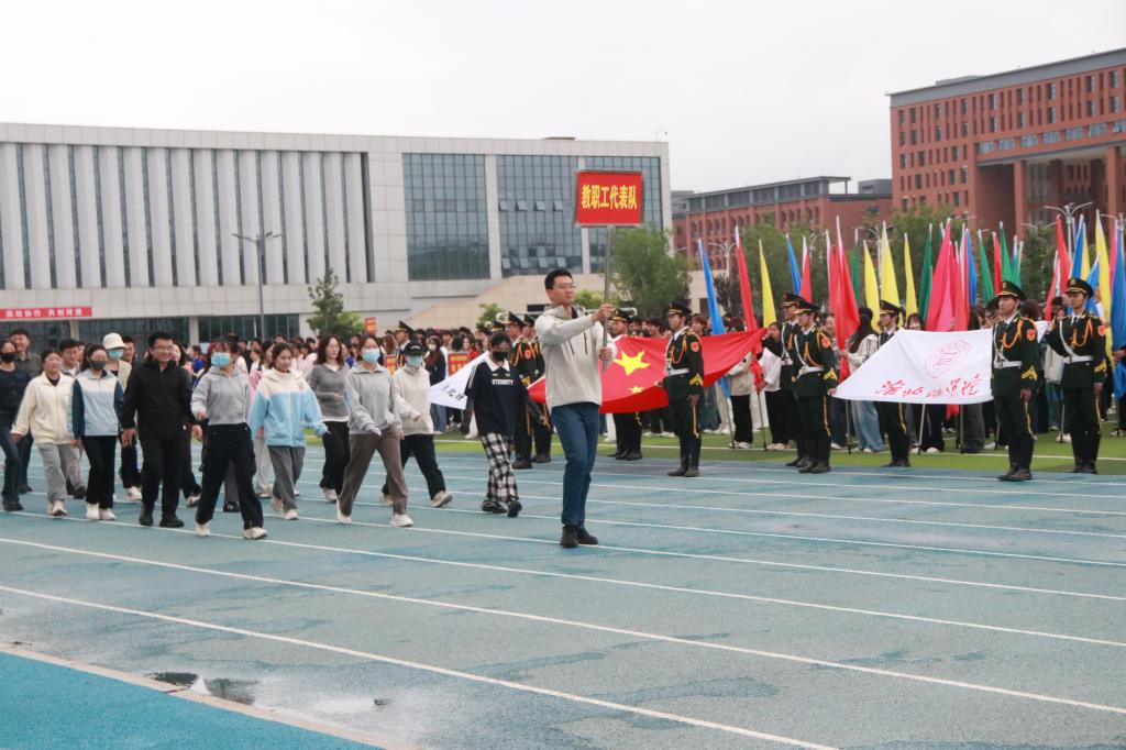 随后,校旗队、彩旗队、裁判员队以及学校各参赛队伍依次有序入场。各代表队精神抖擞、意气风发,他们迈着整齐的步伐,喊着响亮的口号,展现出bat365中文官方网站师生积极向上、奋勇拼搏的精神风貌。
