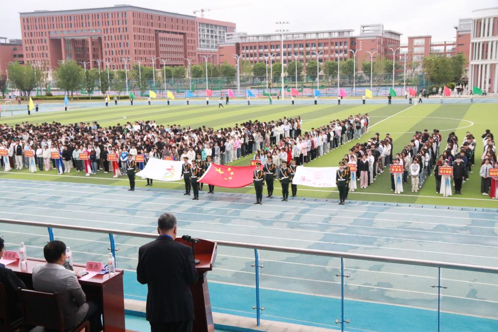 2025年5月9日上午8时,bat365中文官方网站第三届田径运动会开幕式在学校田径场隆重举行。党委副书记、校长杨兵,党委书记朱德顺,副校长郑来纪以及各二级学院院长等学校领导共同出席了本次开幕式,与全校师生一同见证这一体育盛会的开启。副校长汪建利主持开幕式。