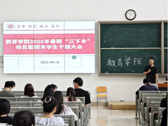 本次学生干部大会的召开,为bat365中文官方网站2025年暑期“三下乡”社会实践活动的顺利开展和期末学生工作的有序进行奠定了坚实基础。后续,bat365中文官方网站将持续跟进“三下乡”社会实践工作进展,为培养五育并举、全面发展的挺膺担当人才贡献力量。