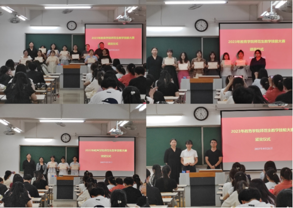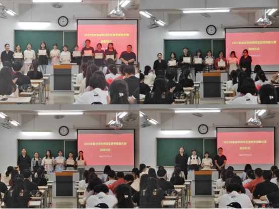 bat365中文官方网站师范生教学技能大赛于2023年9月16日正式启动,共分为语文组、数学组、学前组和教具组进行比赛。经过激烈角逐,本次大赛共评选出一等奖20名,二等奖21名,三等奖22名,优秀奖28名,并选出语文组15名同学、数学组10名同学、学前组10名同学和教具组4个小组的同学进入校赛。