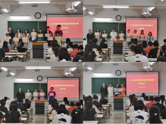 (郝子靖老师、李姜悦老师、郝佩佳老师和邵和君老师为二等奖获得者颁发荣誉证书)