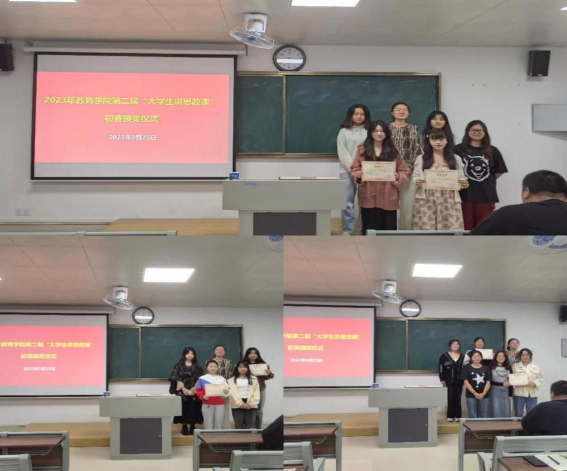 颁奖仪式开始前,张凌云同学对本次“大学生讲思政课”初赛作了简单的说明,并介绍了参加本场颁奖仪式的老师们,接着分别宣布了获得一等奖、二等奖、三等奖以及优秀奖的选手名单,负责颁奖的老师分别向获奖选手颁发荣誉证书。