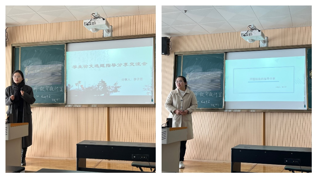 会议主要由三项流程组成,流程一由“论文写作与指导”课程的授课教师李子芳教师分享关于论文选题的相关经验,李老师从选题范围、选题是否符合专业领域等方面展开了介绍,并列出了指导学生选题的一些具体方法,使教师们在评判学生选题是否可行的评判标准上更加明晰;