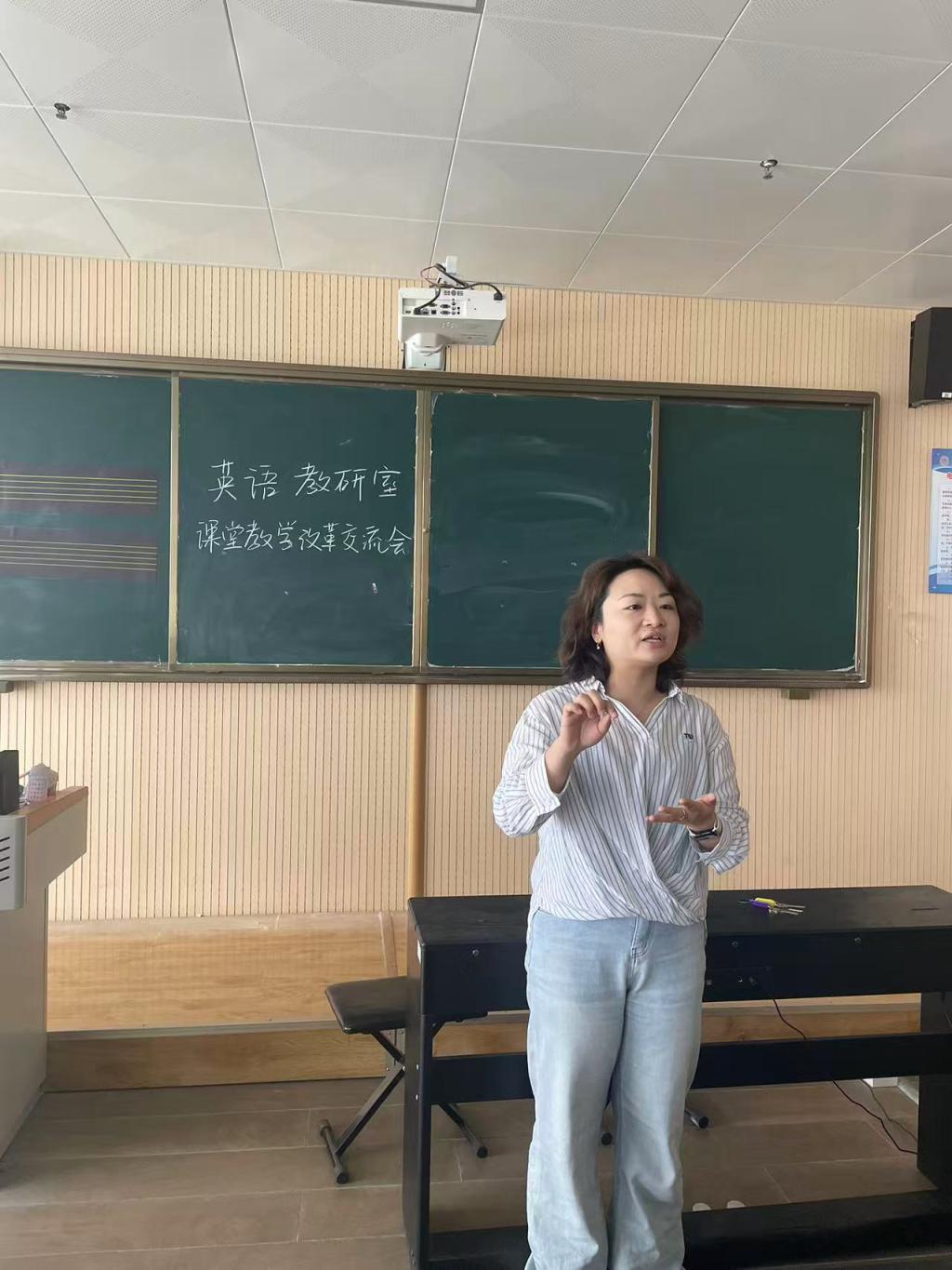 活动中,教研室主任路璐首先传达了学校关于课堂教学改革的指导精神,强调英语教学应立足学科特点,结合信息化手段,构建“以学生为中心”的互动课堂。她指出:“课堂教学改革是提升人才培养质量的关键环节,英语教学不仅要注重语言技能的培养,更要融入跨文化交际能力和批判性思维的训练。”
