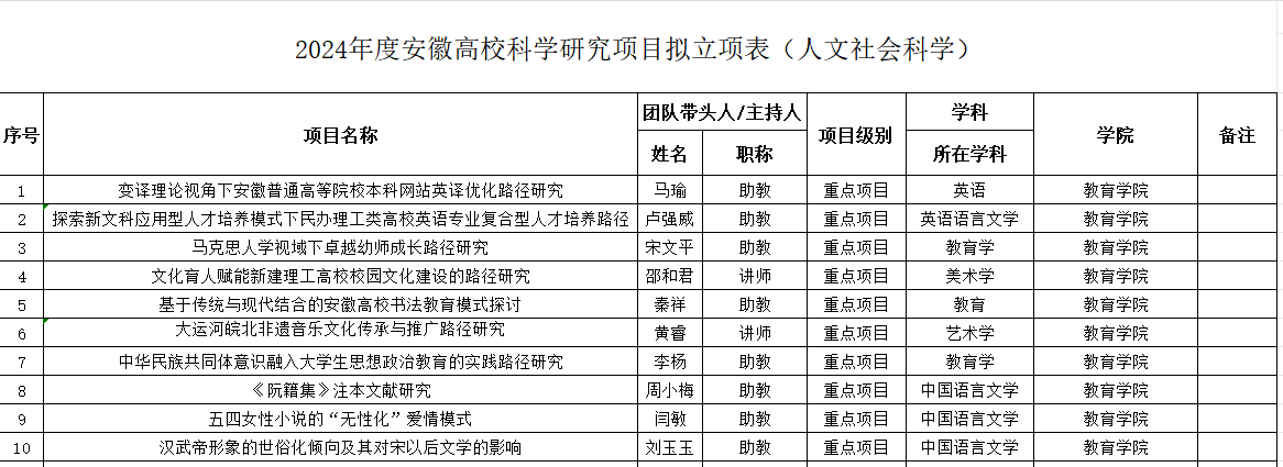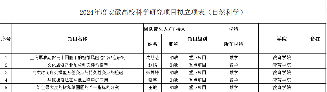 年度安徽省高校科学研究重点项目