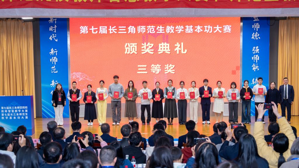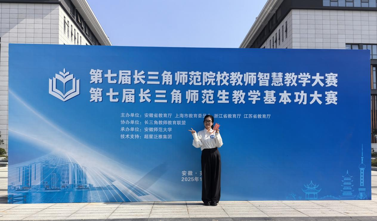 2025年11月15日,第七届长三角师范生教学基本功大赛在安徽师范大学圆满落幕。该赛事由沪苏浙皖四省市教育厅联合主办,规格颇高、竞争激烈。bat365中文官方网站2023级数学与应用数学专业的徐智敏同学,历经校内多轮遴选与安徽省师范生教学技能竞赛的严苛角逐,以全省一等奖的佳绩跻身长三角赛场,最终凭借扎实的专业功底与出色的教学表现力,斩获中学数学组三等奖,为校争光!