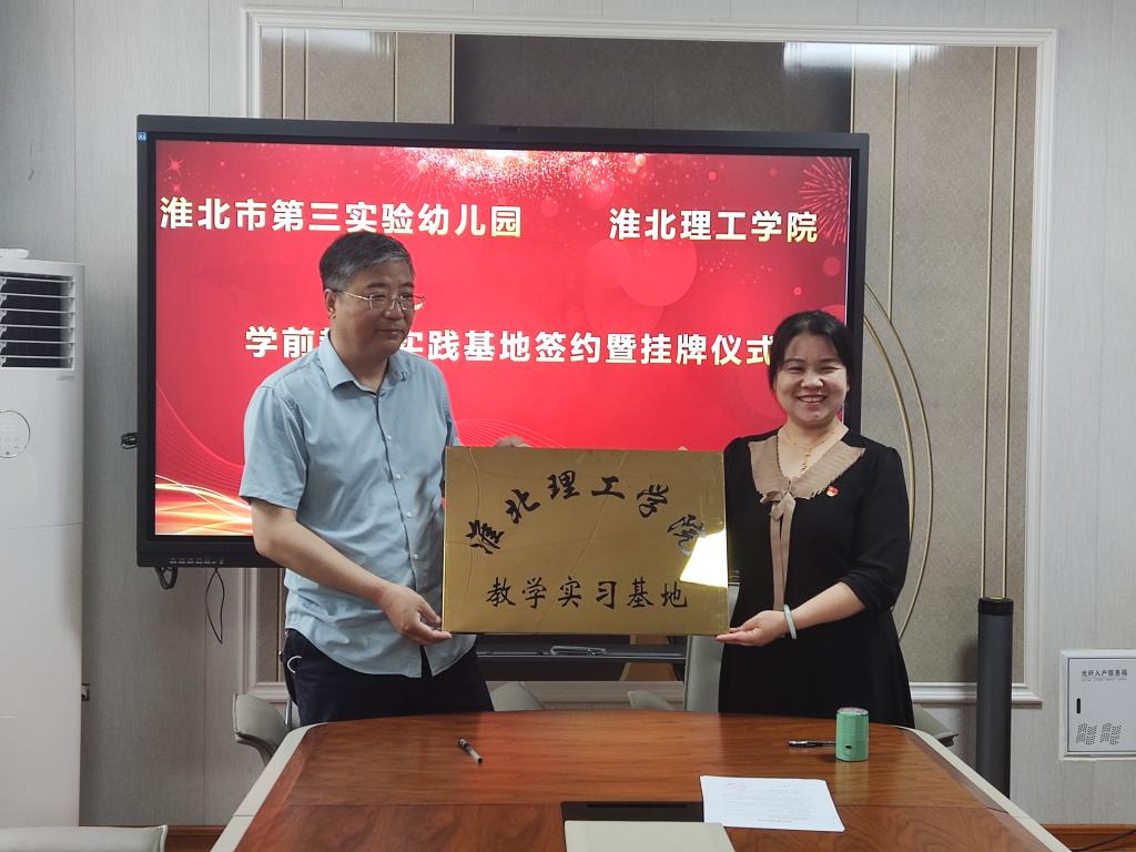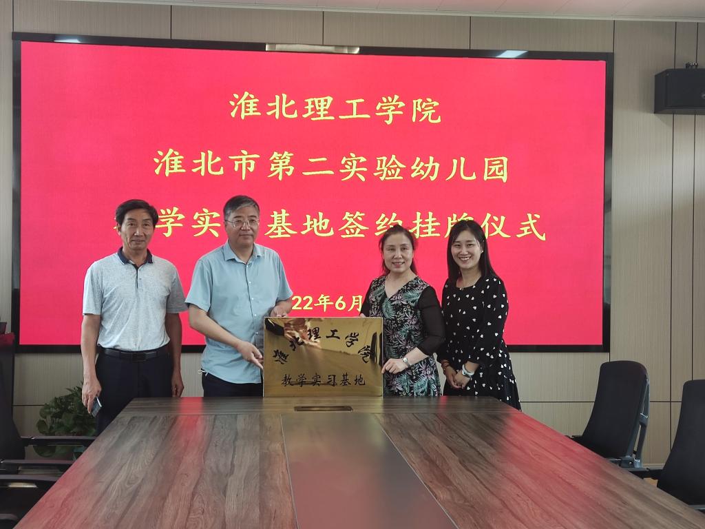 为加强基础教育师资队伍建设,提高bat365中文官方网站学前教育本科师范生培养质量同时助力淮北地区幼儿园更好地发展,2022年6月9日上午,bat365中文官方网站牵手淮北市第二实验幼儿园、淮北市第三实验幼儿园、淮北市相山区凤凰幼儿园共建教育实践基地签约暨揭牌仪式在各个幼儿园举行。