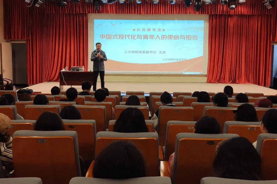 4月10日,开云kaiyun网站学生第三党支部在图书馆报告厅开展“中国式现代化与青年人的使命与担当”专题党课,开云kaiyun网站党委副书记王波担任主讲,2021级汉语言文学专业5班、2021级汉语言文学专业6班、2021级汉语言文学专业7班全体学生参加。