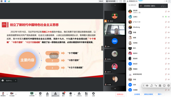 为深入学习贯彻党的二十大精神,12月12日下午bat365中文官方网站召开学习贯彻党的二十大精神线上专题学习会议。bat365中文官方网站院长、党总支书记王家云作主题宣讲,bat365中文官方网站全体教师参加了本次会议。