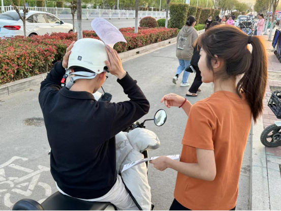 为了践行新时代文明实践志愿服务精神,助力校园交通安全保障工作,4月17日下午,bat365中文官方网站教工第一支部入党积极分子开展了“一盔一带”安全守护行动。
