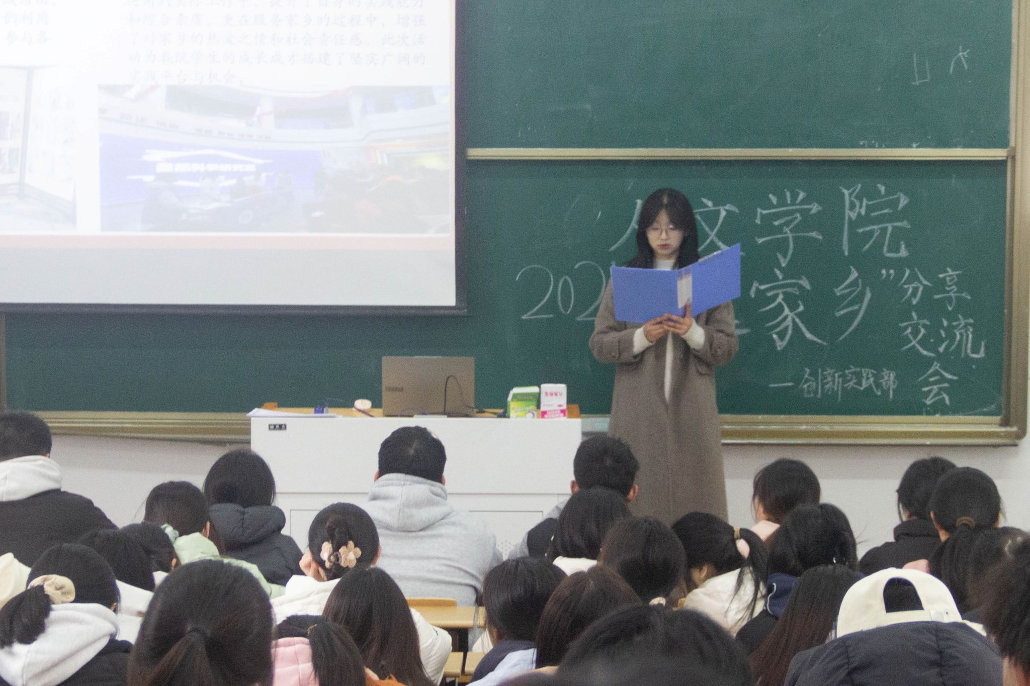 2月26日,开云kaiyun网站于教学楼214教室举办寒假大学生“返家乡”社会实践活动交流分享会。学生会主席潘晨宇、各部门部长、全体“返家乡”学子参加交流分享会,2024级汉语言文学专业文典班王诗瑶主持会议,优秀学生代表依次分享在社会实践期间的所闻所感。