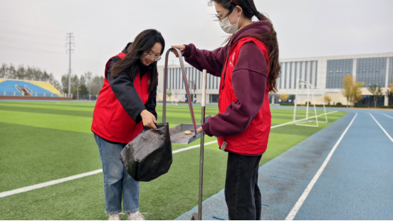 在前期策划中,学院团总支将工作具体要求和分工明细安排下去,共分成三组志愿小队,由带队老师与同学们一起践行服务活动。活动过程中,志愿者们佩戴着手套,手拿垃圾袋、扫帚等清洁工具,对校园内的道路、花坛、草坪、教室等公共区域进行了细致地清理。他们不怕脏、不怕累,用实际行动诠释了“奉献、友爱、互助、进步”的志愿服务精神。在劳动过程中,发展对象们展现出积极主动的高昂热情和责任感,为打造更加美好的校园环境贡献自己的一份力量。