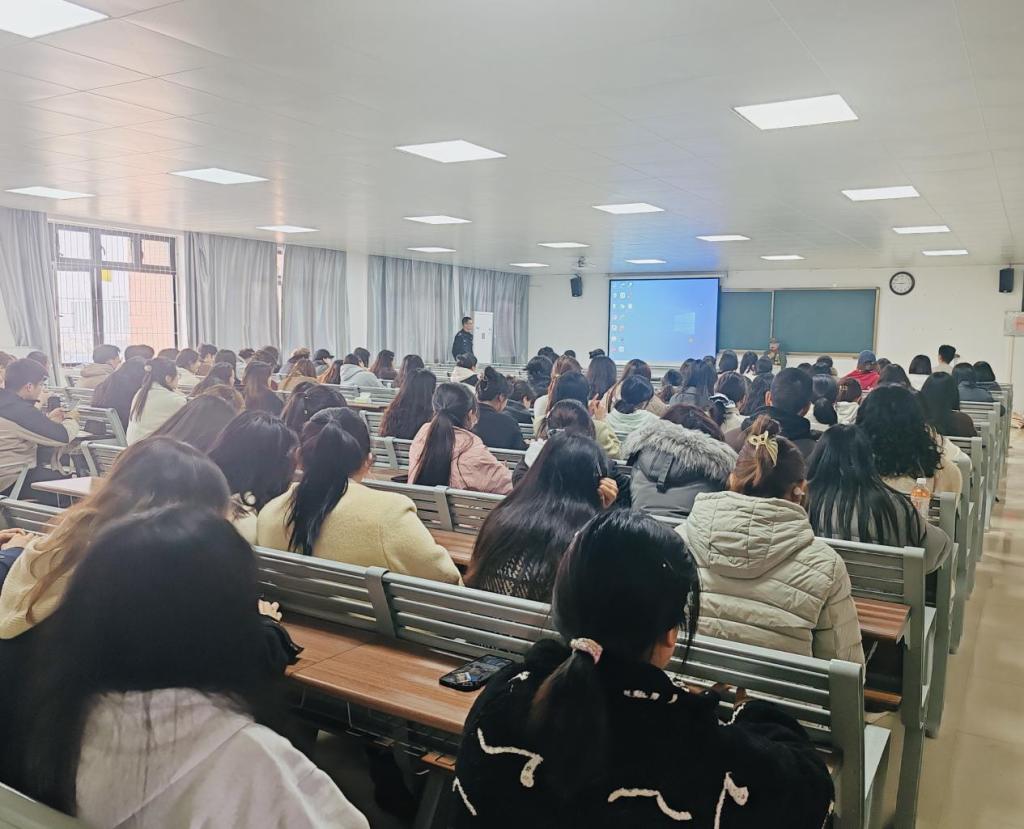 活动伊始,教工第二党支部书记刘畅老师热情地向同学们介绍了莅临现场的杜集区司法局工作人员。随后,杜集区社区矫正局副局长任荣登台,深入剖析了当下新型的社区矫正执行情况。任局长结合实际案例,言辞恳切地告诫同学们,务必树立起牢固的法治观念,始终做一名尊崇法律、严守法律的好公民。