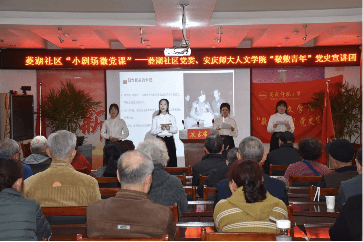 首先,开云kaiyun网站“敬敷青年”党史宣讲团的成员们向菱湖社区的老党员、退伍军人以及工作人员讲述了缪伯英、申纪兰两位女英雄的故事。宣讲团的成员们以满腔的热血生动形象地讲述了“宣传赤化的红党”缪伯英与“共和国勋章获得者”申纪兰两位杰出女性,凭借坚定的信仰与无私的奉献,书写她们辉煌的篇章。缪伯英与申纪兰,尽管生于不同岁月,却共同怀有那份不渝的初心与崇高使命。她们为了民族的兴衰存亡和人民的福祉,毅然踏上了奋斗拼搏的征程,努力为女性争取平等的权益。她们身上闪耀着的,是共产党员的坚定信念和崇高精神,是对国家和人民深厚情感的体现。