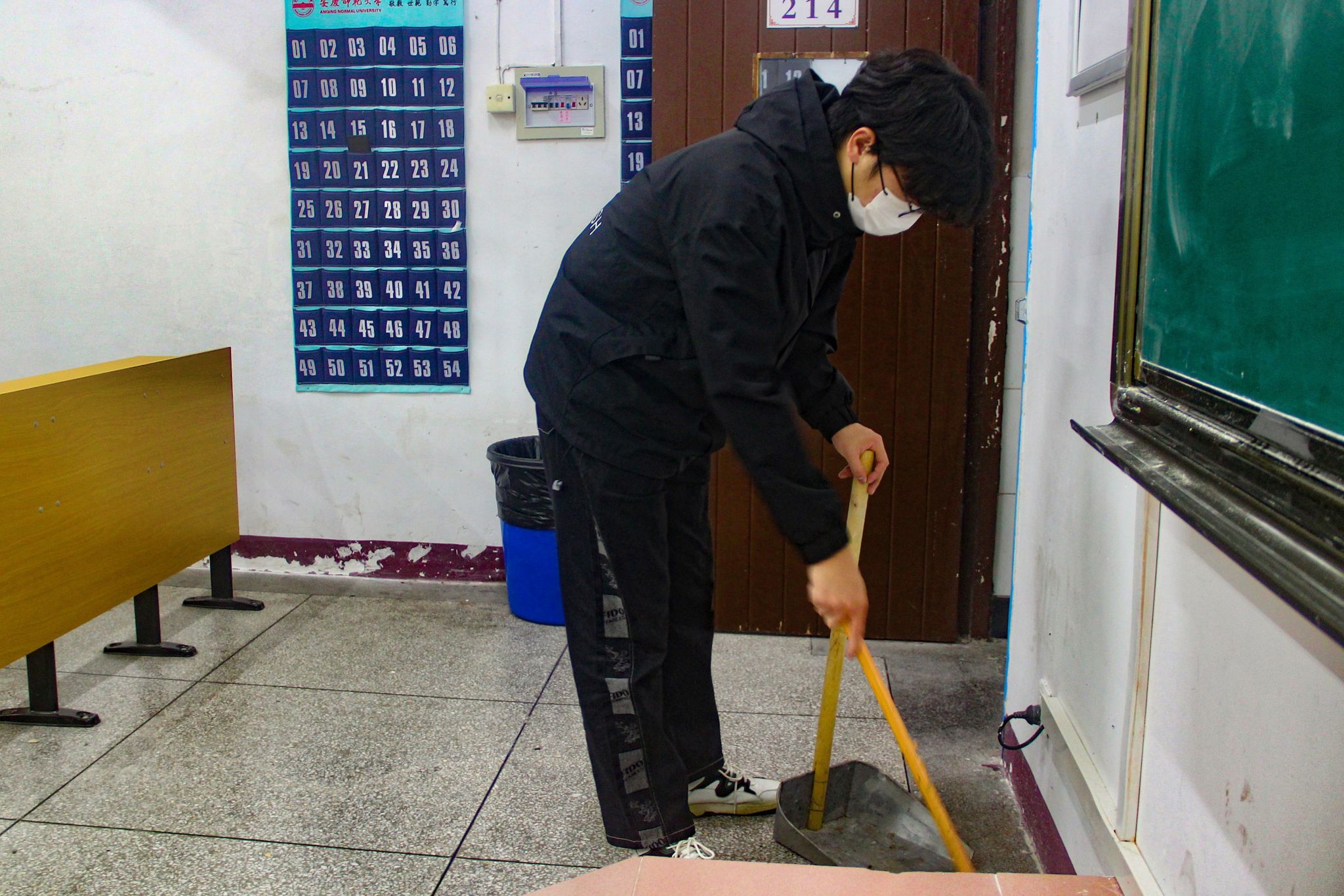在清扫过程中,志愿者们不怕脏、不怕累,对教室的地面、桌椅、黑板都进行了全面清洁。他们认真细致地擦拭窗户,不放过任何一个角落的灰尘。楼道里,志愿者们齐心协力,合作清扫垃圾,清理藏在台阶拐角处的污垢。由于许多学生利用空余时间在教室内自习,清扫教室的志愿者控制着彼此交流的音量,放轻脚步,在做好自己本职工作的同时,不打断其他学生的学习进程。