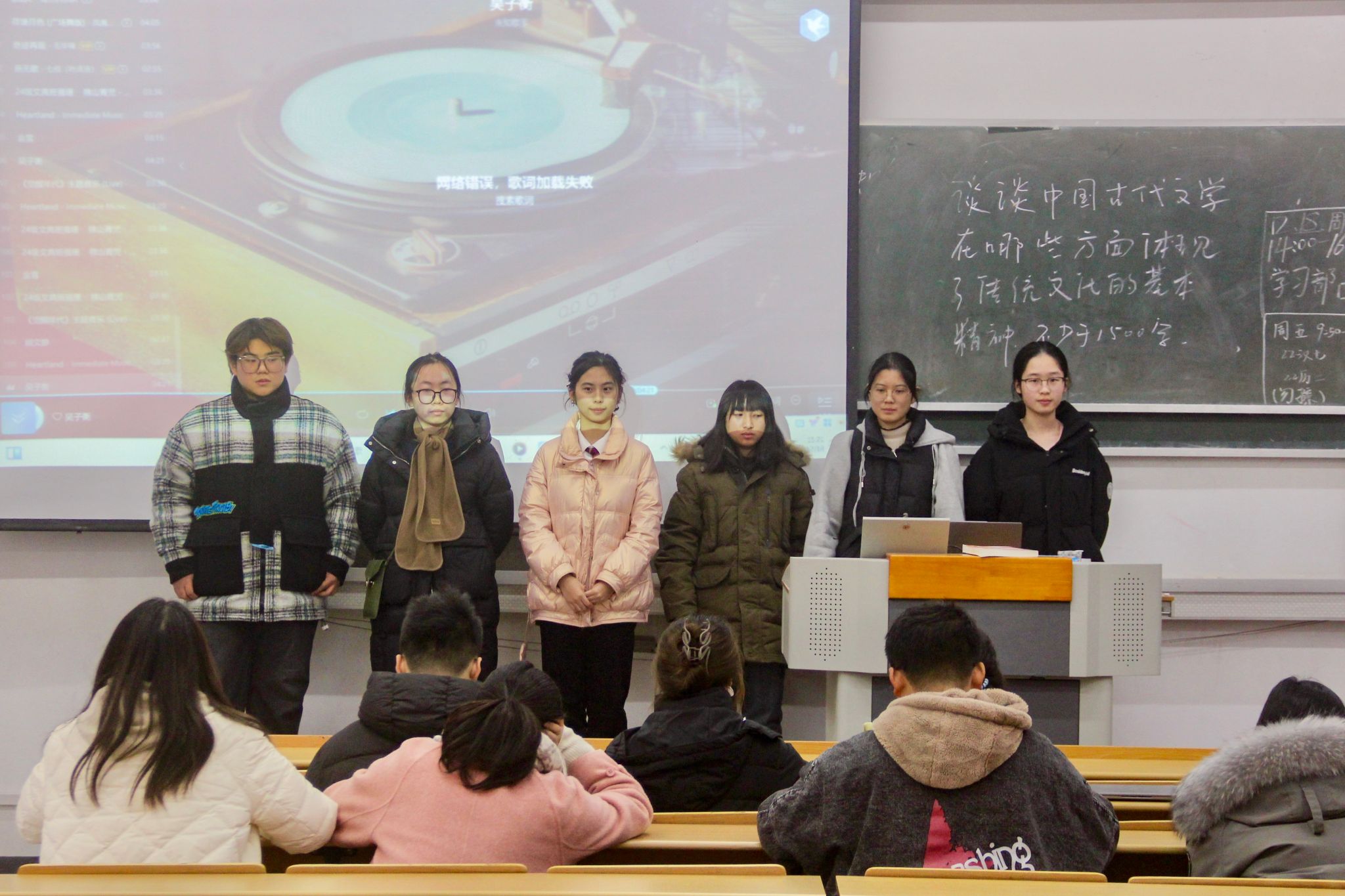 铸就民族之魂,传承振兴之任。伴随着跌宕激昂的音乐,2023级汉语言文学专业(2)班顾文静用沉重严肃的声线讲述着南京大屠杀历史事件。“今天我们站在这里是为了追求和平,是每个人应当践行的青年使命。以史为鉴,面向未来,在铭记历史中书写新时代的篇章。”2024级中国语言文学类专业(1)班郭淑雅将新时代青年人的责任娓娓道来。