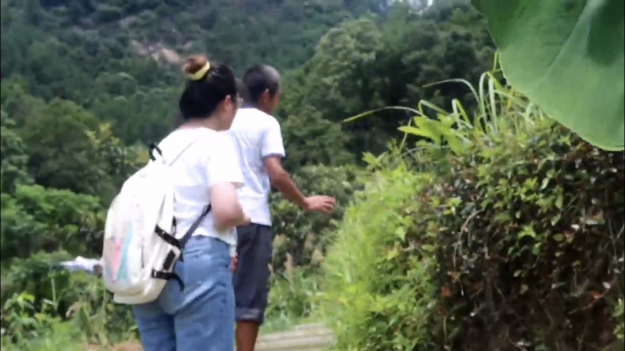 河口村的一位热心的老队长为团队介绍本地的特色油茶种植业。当地种植户在十几亩的田地中投入大量人力、物力和财力,例如在田地边铺砖修路、派专人去除田地里的杂草等。