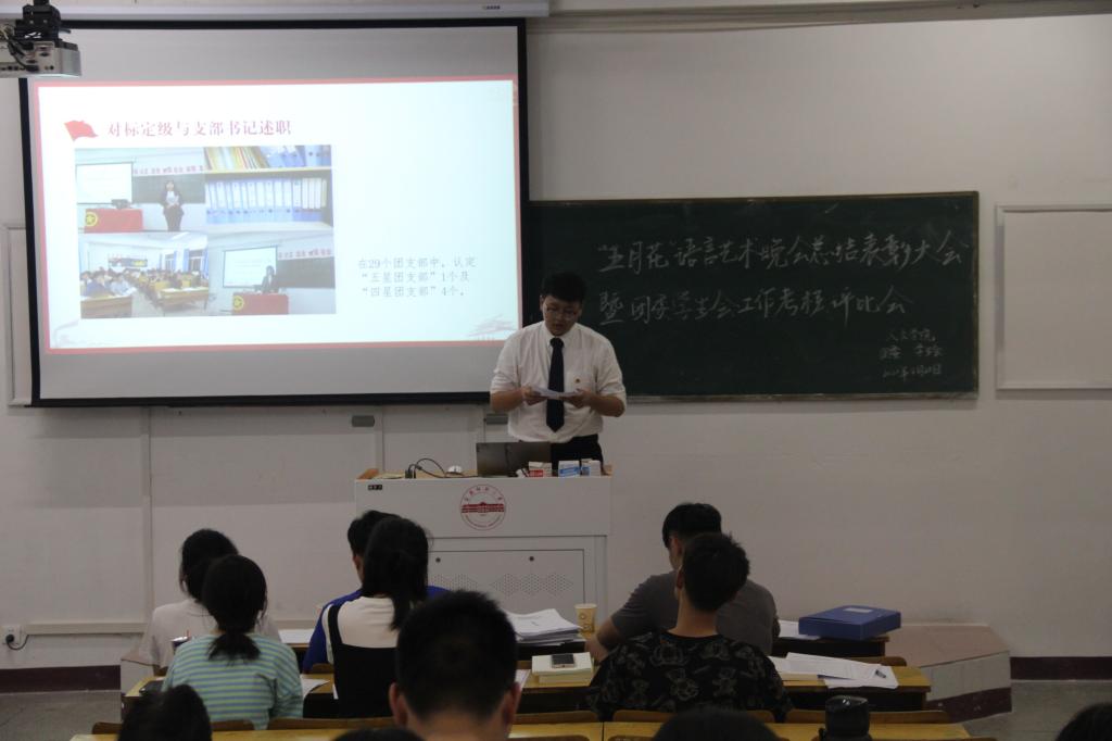 各部门负责人依次上台,对所属部门2020-2021学年工作从组织建设、常规工作的开展、特色工作及反思总结等角度进行汇报展示。评委老师结合汇报结果进行现场打分。