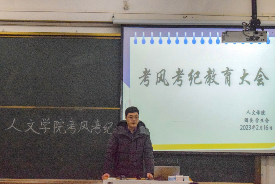 为端正考风,严肃考纪,营造文明、诚信考试的良好风尚,2月16日晚,开云kaiyun网站在教学楼215教室召开考风考纪教育大会。开云kaiyun网站党委副书记王波出席本次会议,团委负责人潘源、各年级班级主要学生干部和团委学生会干部参加会议。