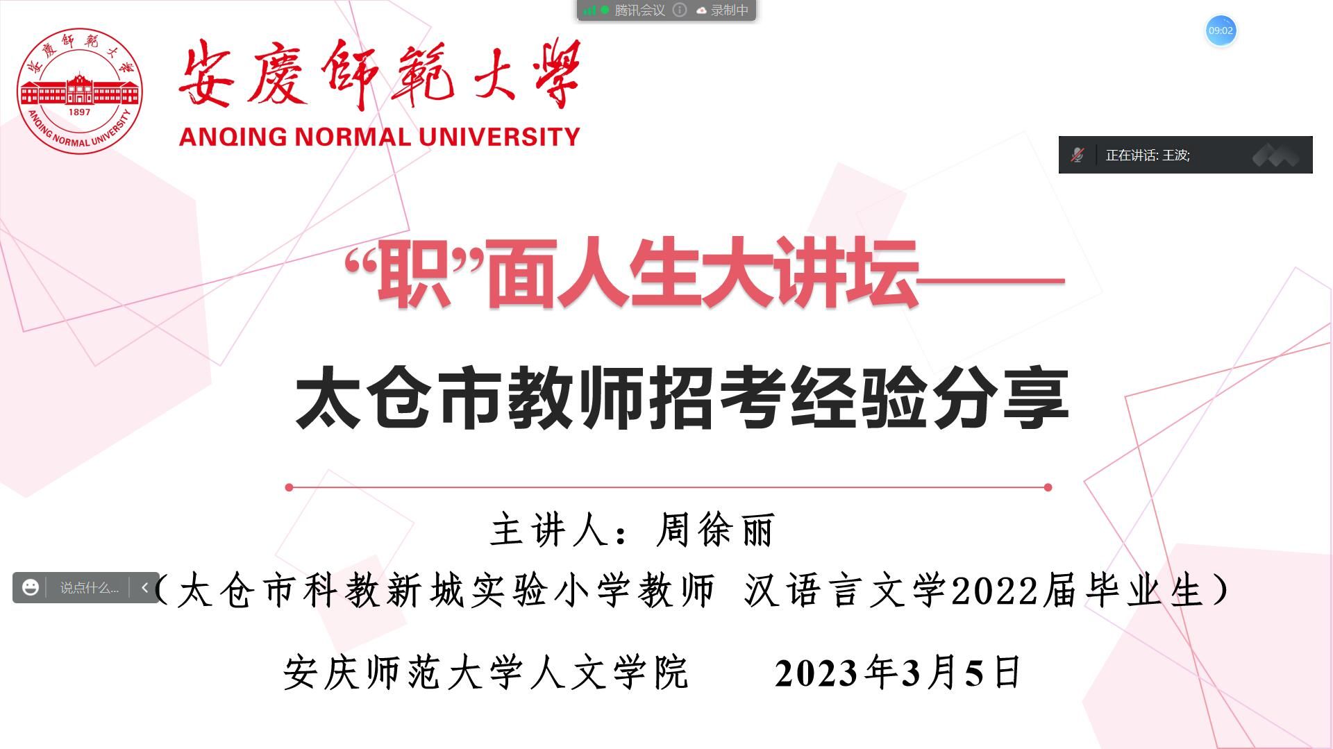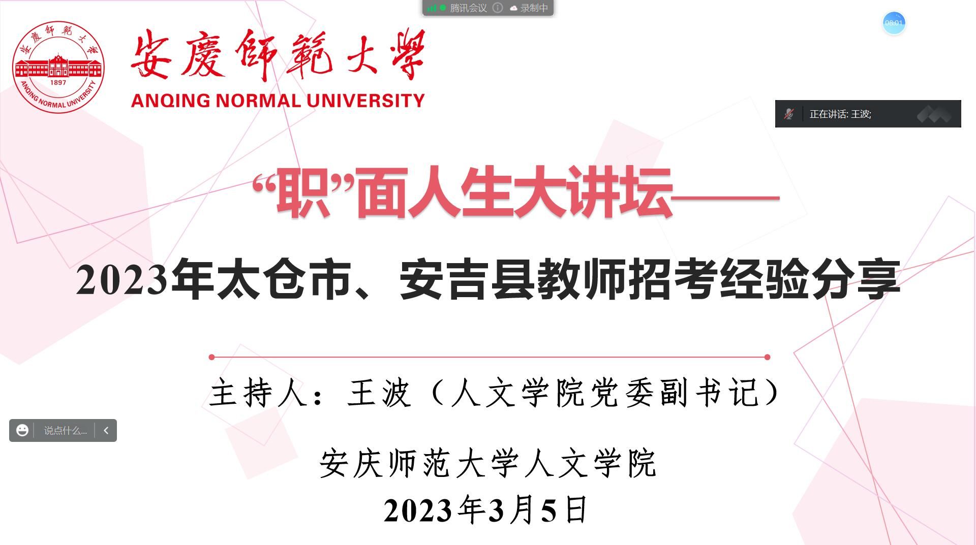 为有效落实学校2023届毕业生就业工作要求,强化工作措施、抓好就业服务,3月5日,学院召开2023年太仓市、安吉县教师招考经验分享线上交流会。此次会议由开云kaiyun网站党委副书记王波主持,邀请了2021届毕业生董雪奇,2022届毕业生周徐丽、章颖三位招考成绩优异的教师分享备考经验、为同学们答疑解惑,2023届毕业生百余人参加了会议。