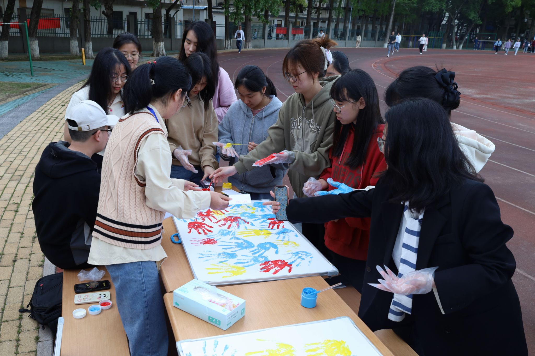 整只手被黄色颜料“包裹”,来自中国语言文学类2022级5班的戴晶晶将手轻轻拍在白纸上,留下一枚独特的黄手印。戴晶晶表示,“活动形式兼具新颖性和趣味性,通过手印画创作,我们能感受到浓厚的青春气息!”据了解,该活动所用的手套与颜料均采用环保材料,在为学生们带去欢乐的同时,不会对环境造成污染。