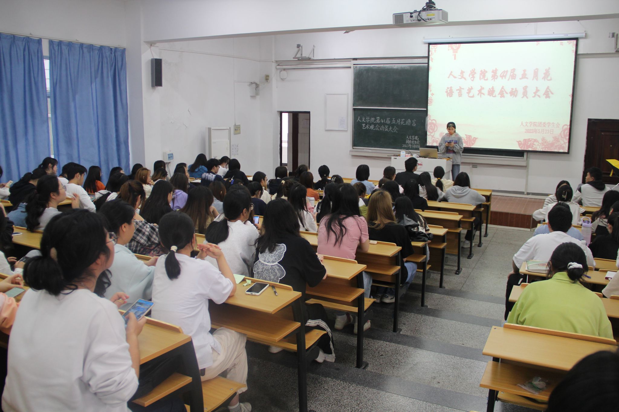 5月24日下午开云kaiyun网站召开第41届五月花语言艺术晚会动员大会,开云kaiyun网站团委洪星星老师出席指导。自晚会筹备以来,学院高度重视,团委学生会各部门成员各司其职、相互配合,如今晚会筹备已进入最后倒计时阶段。
