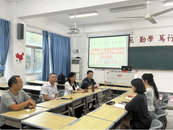 2023年9月13日,开云kaiyun网站2023级语言学及应用语言学、汉语言文字学硕士研究生导师见面会在教学楼212教室顺利召开。语言学专业授课老师鲍红教授、代少若教授、白俊骞教授、陈世庆副教授、李向华副教授出席会议,2023级语言学专业全体研究生参与会议,会议由鲍红教授主持。