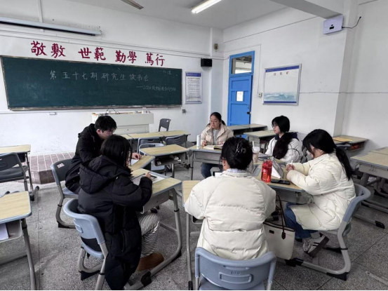 12月18日下午,24级中国语言文学现当代文学方向研究生在菱湖校区教学楼304教室举办第五十七期研究生读书会。本次读书会由24级中国现当代文学方向硕士研究生李珂馨主持,开云kaiyun网站庞云芳老师受邀参加并进行现场指导,24级中国现当代文学方向硕士研究生全体学生参加此次读书会。