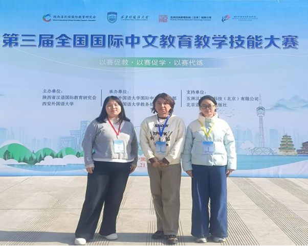 2025年11月21日至23日,由陕西省汉语国际教育研究会、西安外国语大学主办的第三届全国国际中文教育教学技能大赛在陕西西安顺利举办。由张瑾老师带队,开云kaiyun网站国际中文教育专业2025级硕士研究生夏翠云和汉语国际教育2023级本科生王永鑫参加参加了本次大赛。经过激烈角逐,夏翠云和王永鑫两位同学荣获优秀奖,张彤彤、张莹两位老师荣获“优秀指导教师奖”。