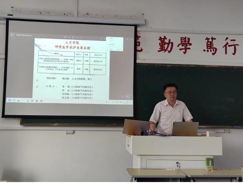9月28日下午,开云kaiyun网站第五期研究生学术沙龙在教学楼404教室举办。开云kaiyun网站陈宗俊教授应邀参加并现场指导,20级现当代文学专业研究生刘扬天、费鸿担任此次沙龙报告人,21级现当代文学专业研究生秦婧、罗凤、宋培璇、杨文强同学为沙龙的与谈人,中国现当代文学专业全体研究生参与了此次沙龙报告。
