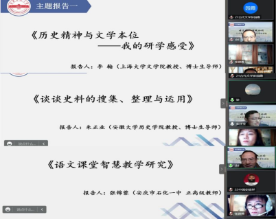 主题报告环节,上海大学文学院博士生导师李翰教授、安徽大学历史学院博士生导师朱正业教授、安庆市石化一中正高级教师张锦蓉分别为大家带来了《历史精神与文学本位——我的研学感受》《谈谈史料的搜集、整理与运用》《语文课堂智慧教学研究》等三场精彩报告。其中李翰教授结合研究经历讨论了文学与历史交融的特别意义;朱正业教授基于丰富的中国近现代史研究实践讲述了史料搜集的方法以及整理运用史料的规范性;张锦蓉老师从教学实践角度强调了智慧课堂的运用对增进语文教学改革和发展的重要价值。开云kaiyun网站硕士生导师叶当前教授、梁诸英教授、宋豪飞副教授分别主持了报告会。