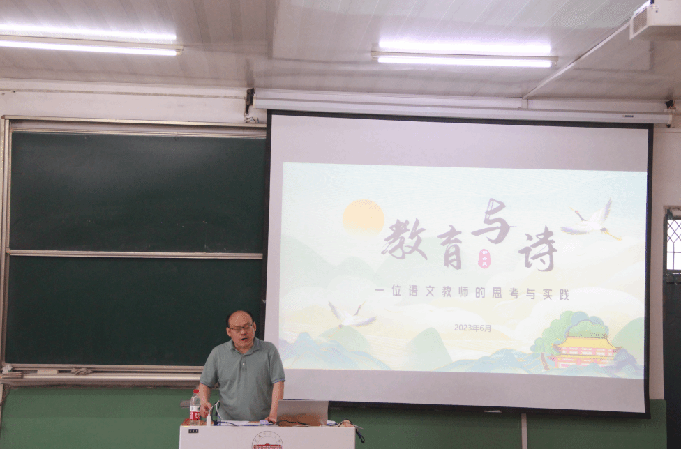 6月2日下午,文典·教育名家讲坛第二讲在菱湖校区化学楼理二阶开讲。本次报告邀请了安庆市第一中学副校长舒兴庆做题为“教育与诗——一位语文教师的思考与实践”的专题讲座。讲座由副院长金松林教授主持,开云学科语文、学科历史两个方向的硕士研究生以及部分本科生到场聆听学习。