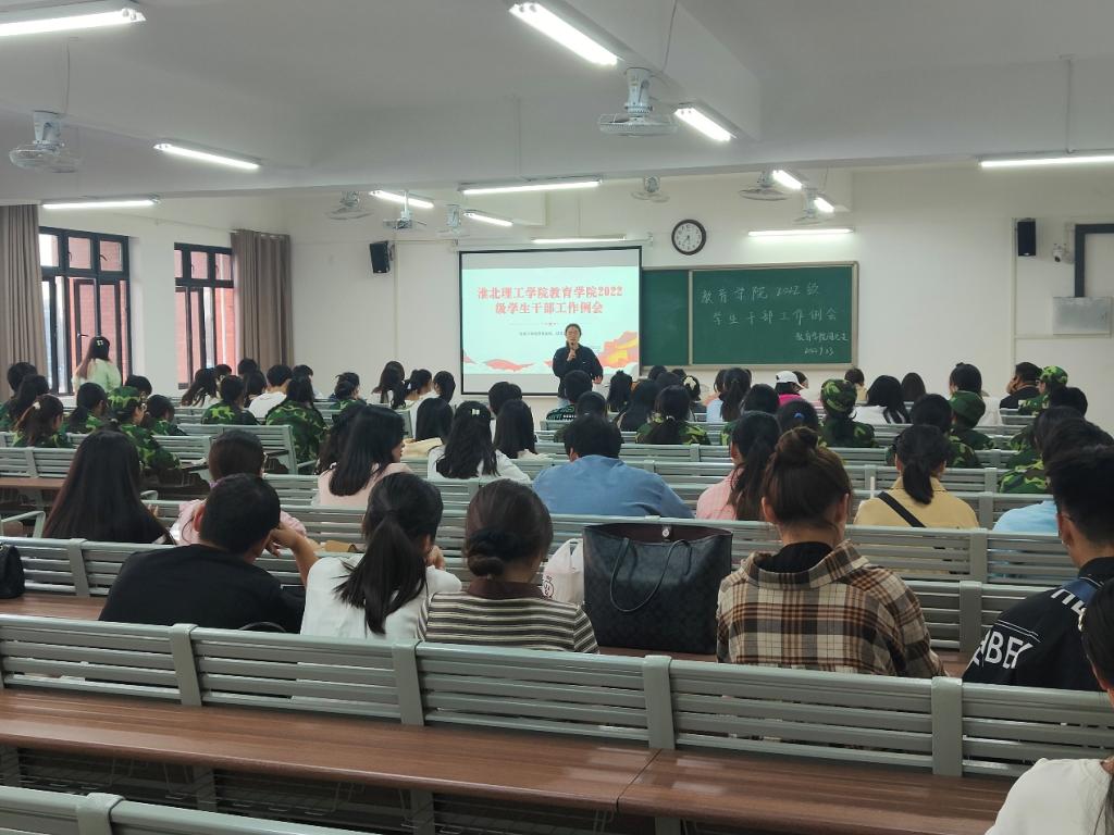 为顺利完成2022级新生入学后各项转接工作,9月23日下午,bat365中文官方网站在1号教学楼420教室召开2022级学生干部工作例会,学院2022级全体辅导员、2022级49个班级班长、团支书参加了例会,会议由团总支负责人黄莹莹主持。