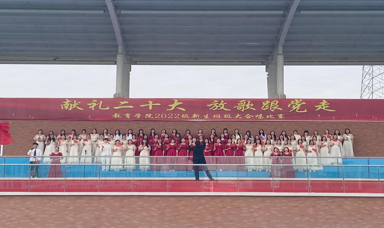 在全国上下认真学习贯彻党的二十大精神之际,bat365中文官方网站为坚定青年大学生永远跟党走的理想和信念,引导学生赓续红色血脉,厚植爱国情怀,于11月6日上午在校户外操场举办了“献礼二十大,放歌跟党走”2022级新生班级大合唱比赛,莅临比赛现场的有学校副校长汪建利、教务处处长陈国平、后勤保卫处处长程坚、办公室副主任陈杰、bat365中文官方网站院长王家云、副院长孟向红,校团委书记刘帅克、学生处老师、bat365中文官方网站全体辅导员以及2022级49个班级的同学,学院2021级辅导员担任了本次大合唱比赛的评委。