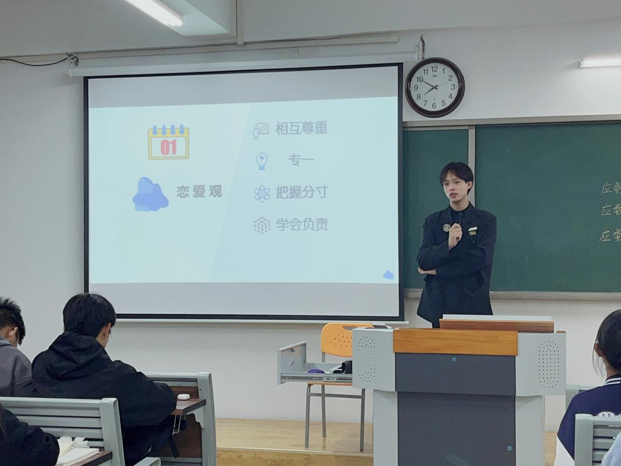 辅导员老师们在主题班会上告诉同学们:要树立正确的恋爱观,对待感情应当做到相互尊重、专一、把握分寸、学会负责。相互尊重在任何关系的相处中都是基础和前提,懂得相互尊重需要平等的理解和信任;专一的对待每份感情是必要更是原则;在校园公共场所内,学生要遵守行为规范,注重文明礼貌,应展现当代大学生的优良风采;同学们在成长的道路上永远要践行的理念就是学会负责,学会承担责任,才能不断成长。