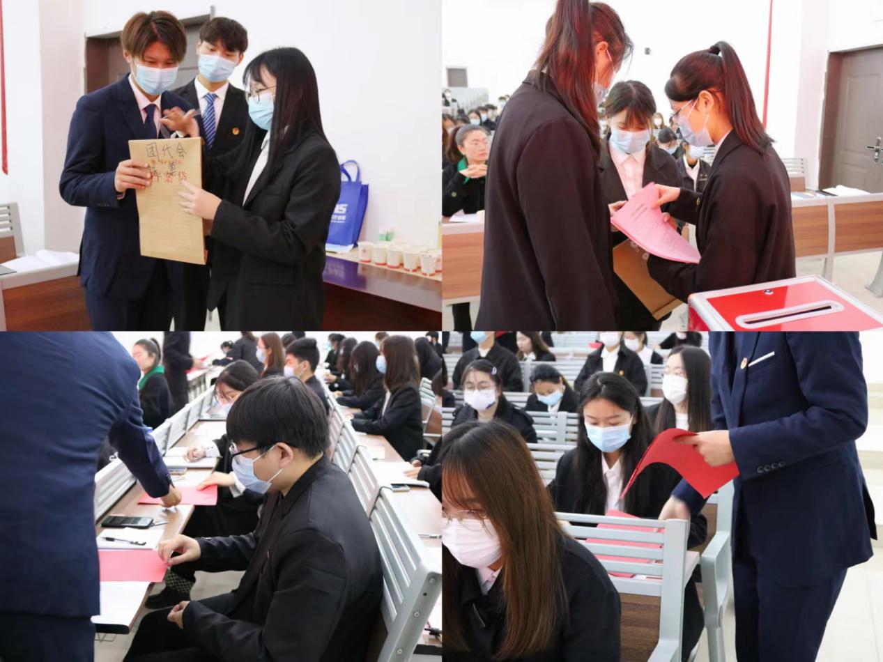 会议选举环节通过了学院“两代会”选举办法,通过监票人名单、宣布计票人名单,在监票人的监督下到会的50名团代会代表和49名学代会代表以无记名投票方式进行差额选举,最终选举并产生了共青团bat365中文官方网站第一届委员会委员5名,bat365中文官方网站第一届学生委员会委员9名。
