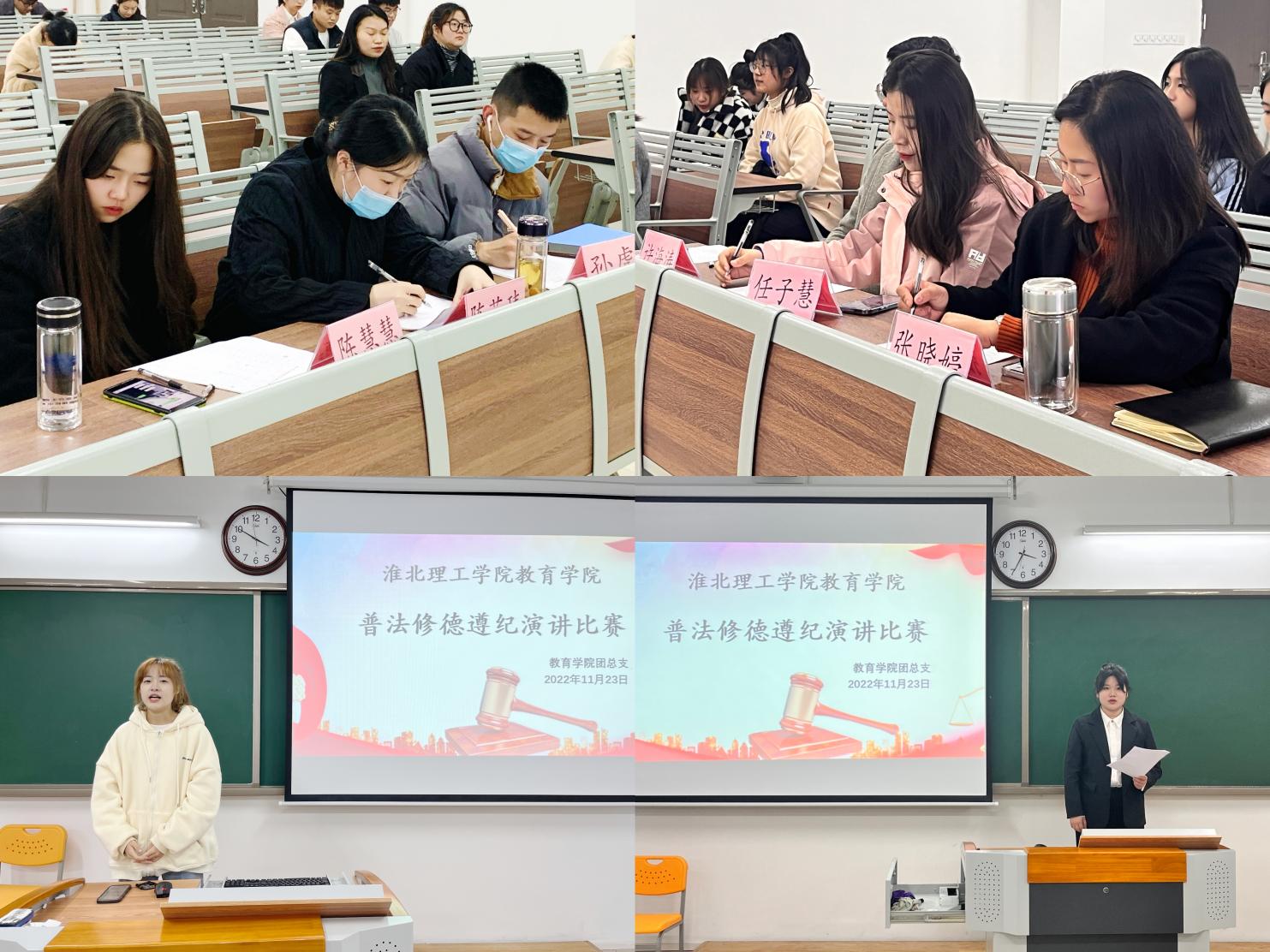 为加深同学们对于普法活动的深刻理解,创新宣传教育方式,bat365中文官方网站在2号教学楼开展了以“普法、修德、遵纪、创建文明校园”为主题的演讲比赛。由各班级推选一名同学参加院级比赛。同学们积极参与,结合自身经历与时代精神,抒发心中之热血,从不同角度用铿锵的语言表达自己独到的思想。昂扬向上的《践行守法使命,谱写青春华章》,宏观大气的《青年共学法,法治强中华》,微观细腻的《做遵纪守法的好青年》,“走新”又“走心”。同学们纷纷表示通过本次活动加深了自己对宪法的理解,感受到学习宪法所带来的爱国情怀和民族自豪感,并承诺一定会成为法律的严格遵守者和坚定捍卫者。经评选,朱灿灿、黄丹妮等5人获得一等奖,张昊天、谢文蓉等10人获得二等奖,王茹、杨梦雅等15人获得三等奖。相信所有同学也将会立足当下,面向社会,让社会主义法治精神深入人心!
