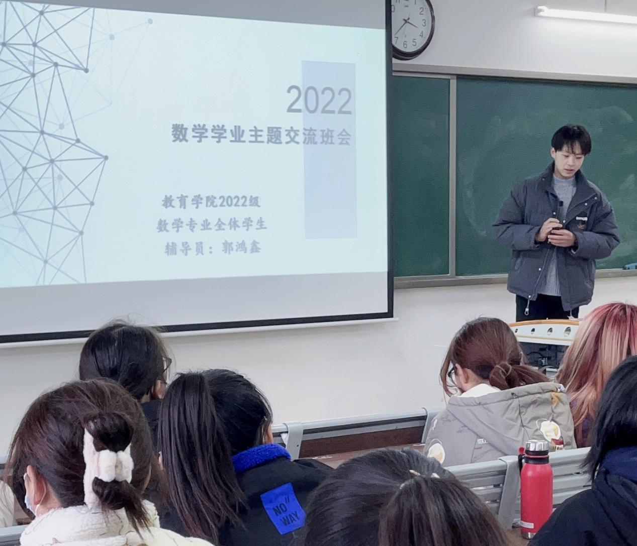 为激发同学们的学习兴趣,更加刻苦地钻研专业知识,坚定自己的职业方向,bat365中文官方网站2022级数学与应用数学和汉语言文学专业共约400名学生于11月下旬分别在1号教学楼520、514等教室分别召开“聚焦学业主题班会”,会议分别由所带专业辅导员郭鸿鑫、李应华主持,他们针对各自专业特点向同学们讲解了关于教师资格证考试和期末巩固复习的相关内容。