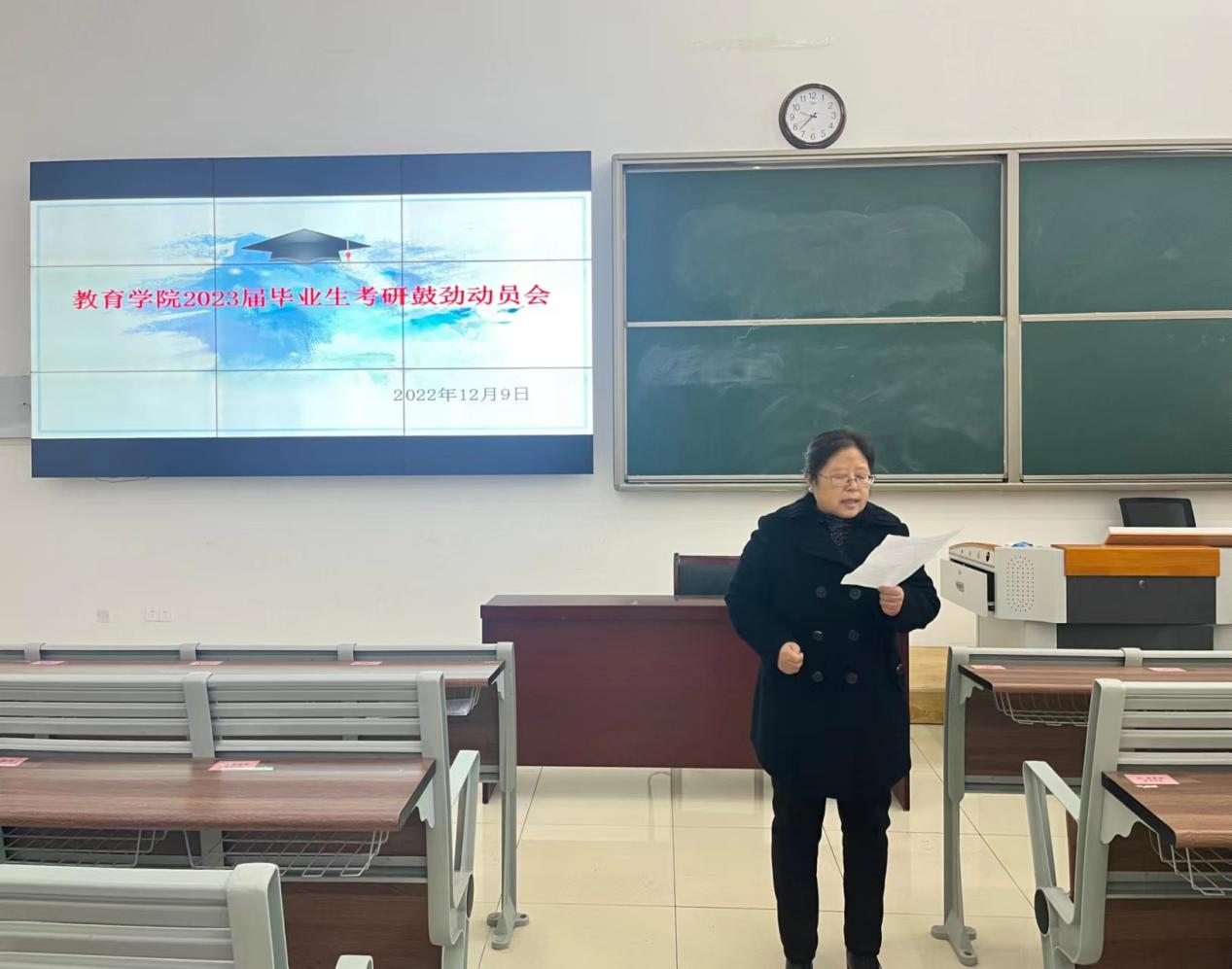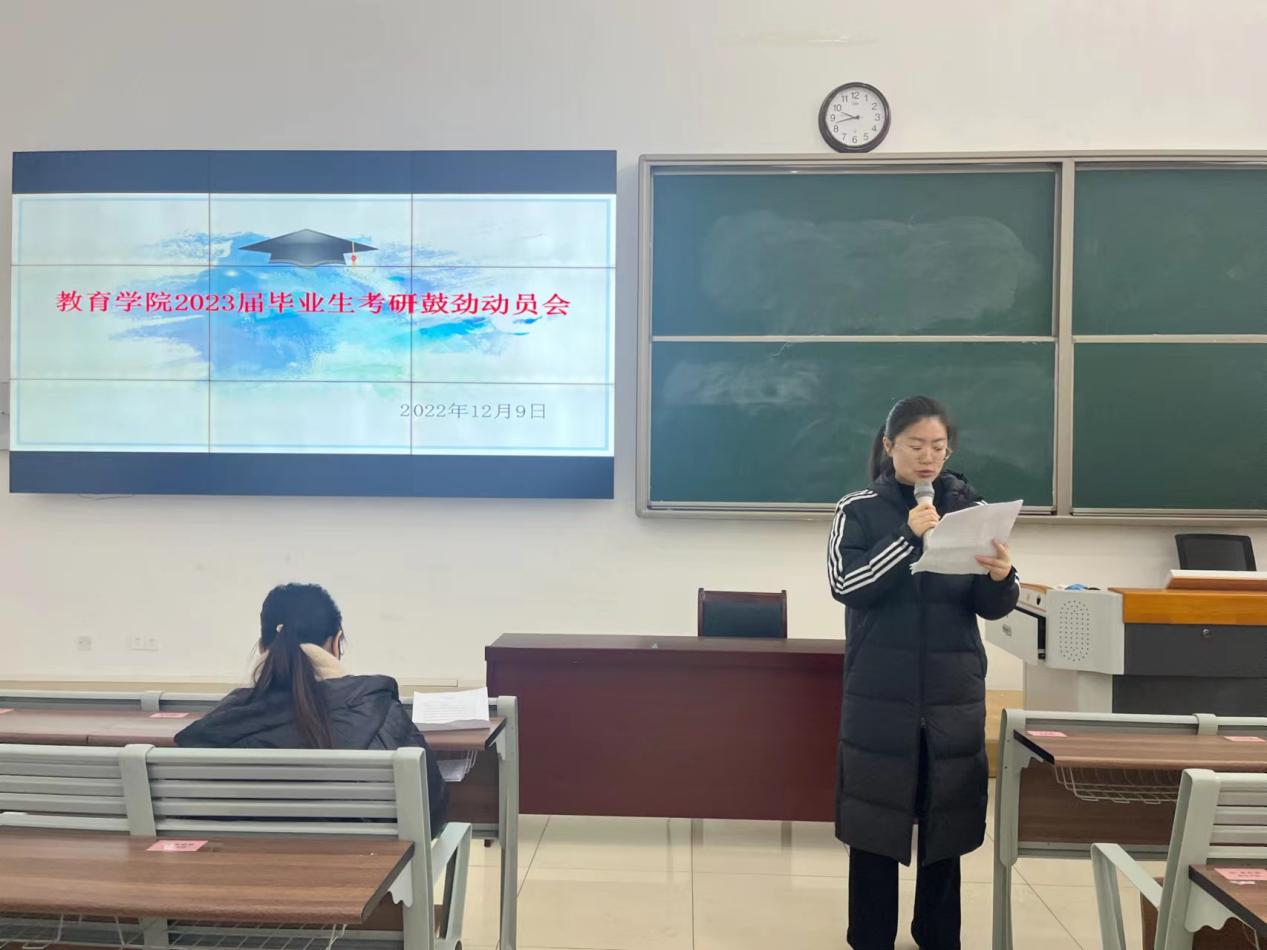 全力以赴促就业,扎扎实实抓考研,为促进同学们更好地了解考研知识,掌握考研方法,调整考研心态。12月9日上午,bat365中文官方网站在1号教学楼121教室召开2023届毕业生考研鼓劲动员会,会议由学院党委副书记孟向红主持,全院汉语言文学、英语、数学与应用数学、学前教育四个专业230余名考研的同学、2023届毕业生辅导员等参加了会议。