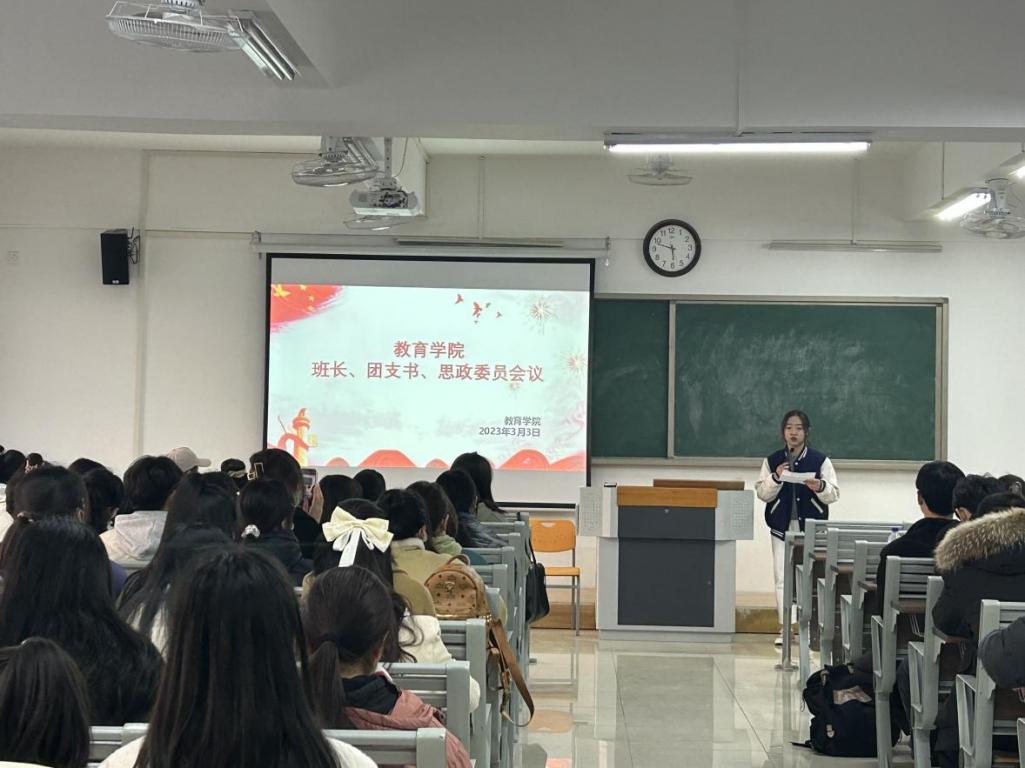 为提高bat365学生干部的工作能力和个人素养,加强学生与老师之间的交流,更好地开展今后的学生工作,3月3日下午,bat365中文官方网站于1教420召开新学期第一次班长、团支书、思政委员工作会议,会议由bat365团总支书记黄莹莹老师主持,孟向红院长、辅导员老师陈慧慧、许海涛及2022级49个班班长、团支书和思政委员参加。