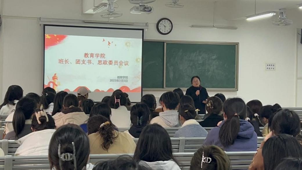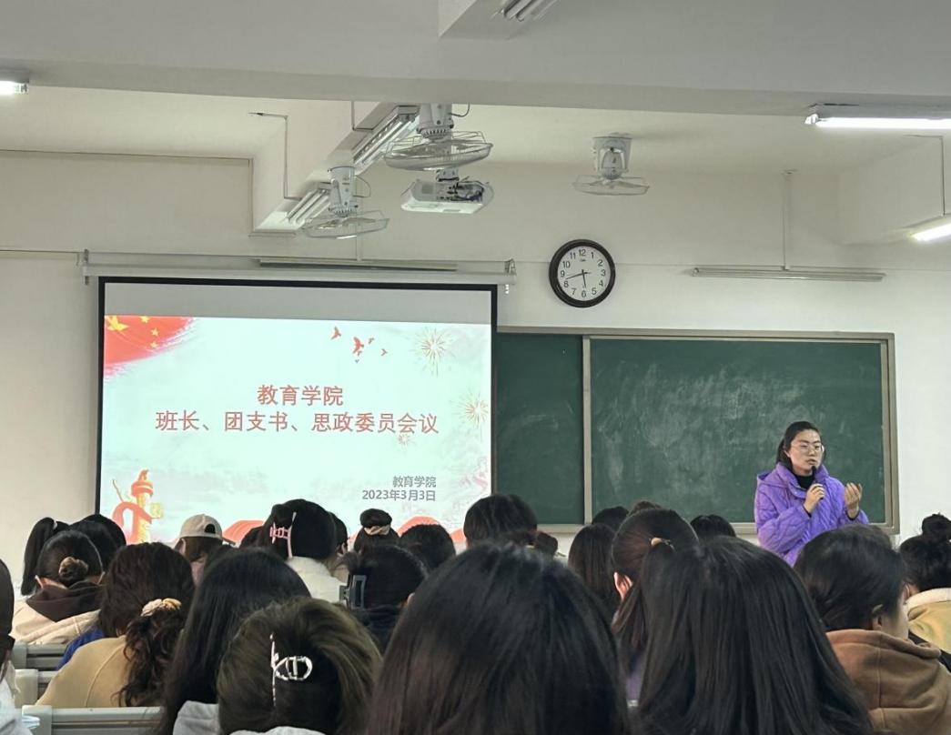 孟向红在会上强调学生干部是辅导员老师的得力助手,学习、工作中一定要以身作则、做好表率,同时也要多关注同学的情绪状态,及时引导、调节并及时将情况报告给辅导员。她对上学期班长、团支书、思政委员的工作表示肯定,希望新学期在党的二十大精神鼓舞下再接再厉,再展学生干部的风貌,为学院学生工作多做贡献。