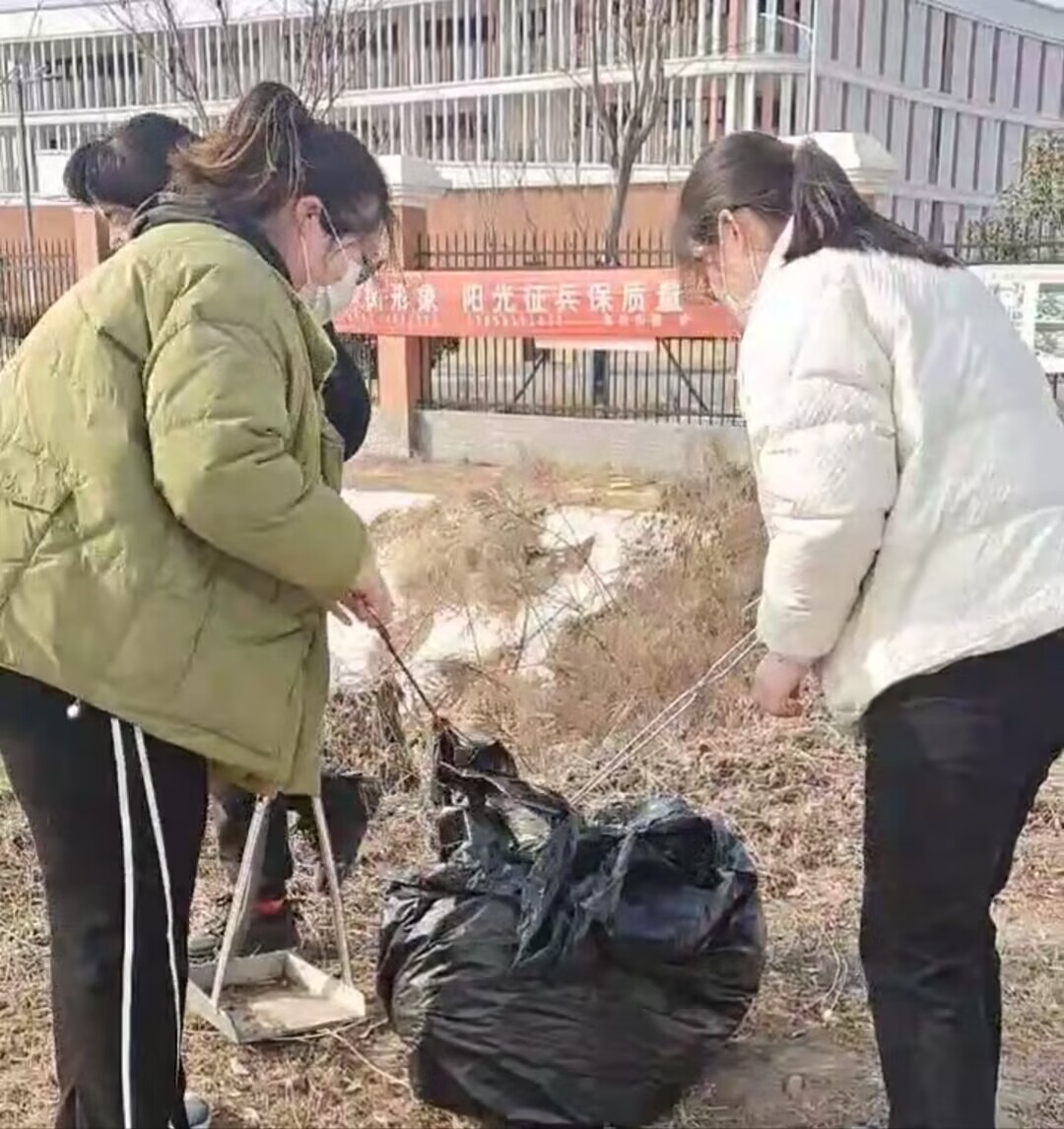 在美化校园活动中,党员和积极分子同学发扬不怕脏、不怕累、肯吃苦的精神,拿起自带的夹子、塑料袋将校园门口的废纸、烟头、杂草等清理干净,小小的举动,让校园更加整洁美丽。